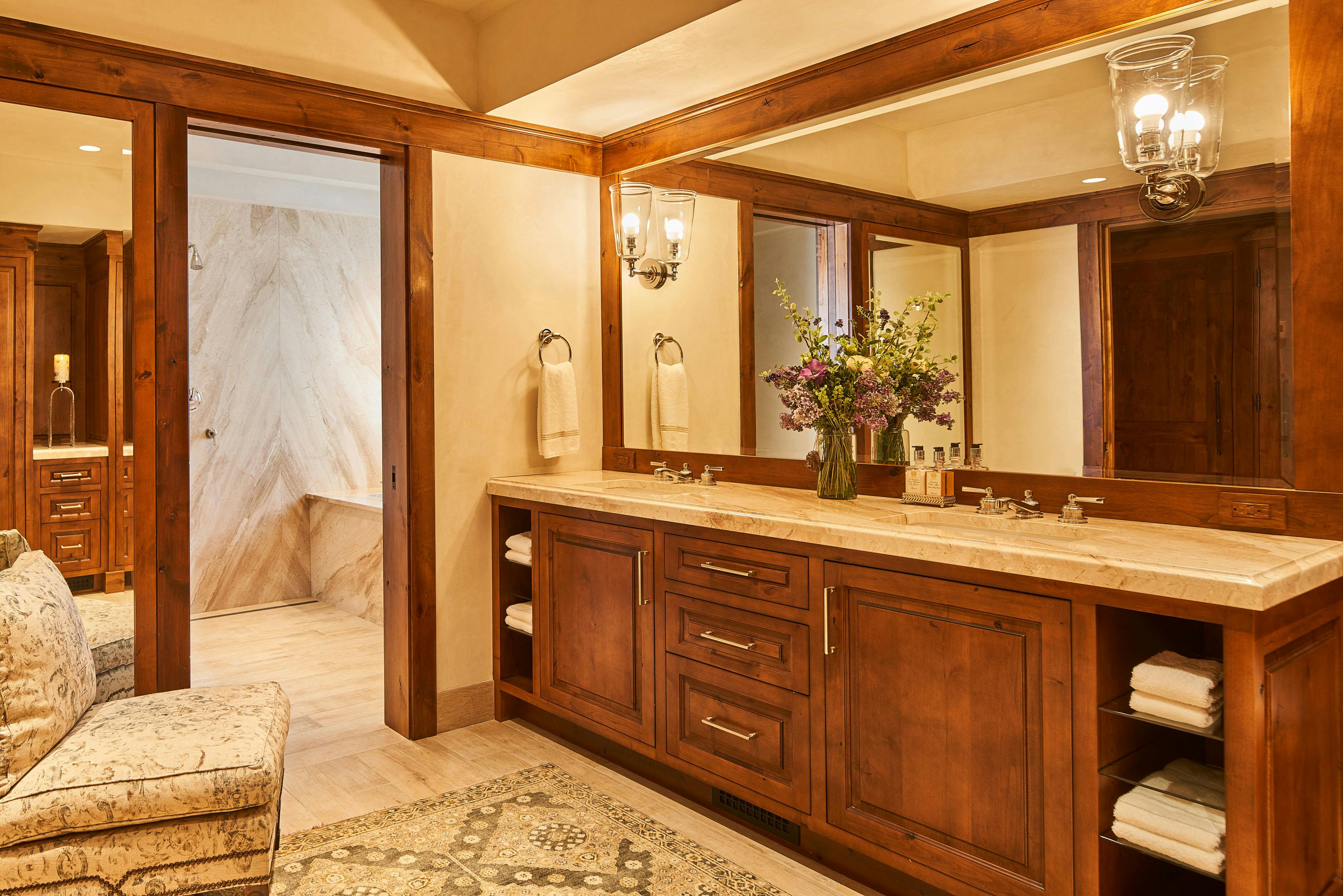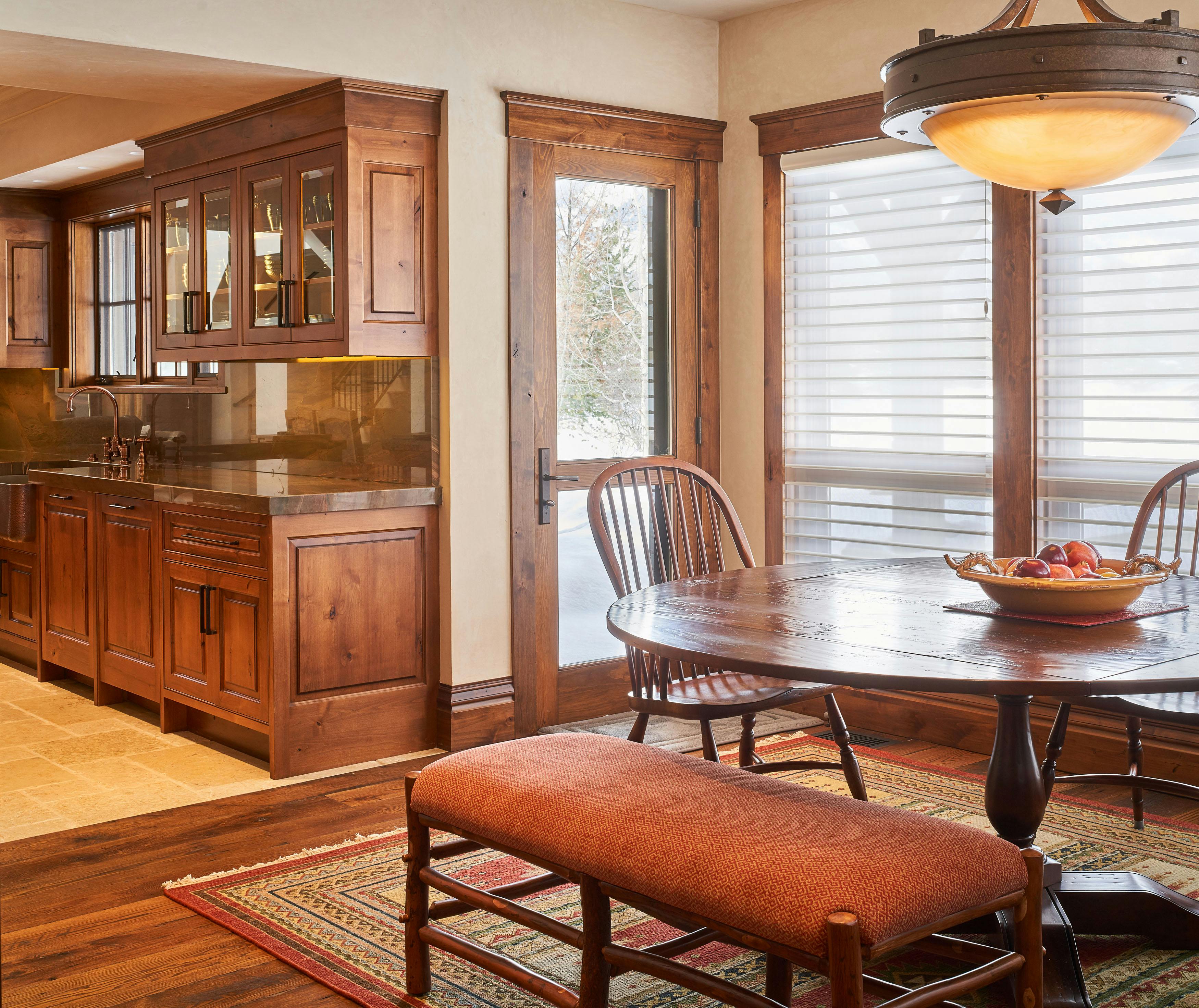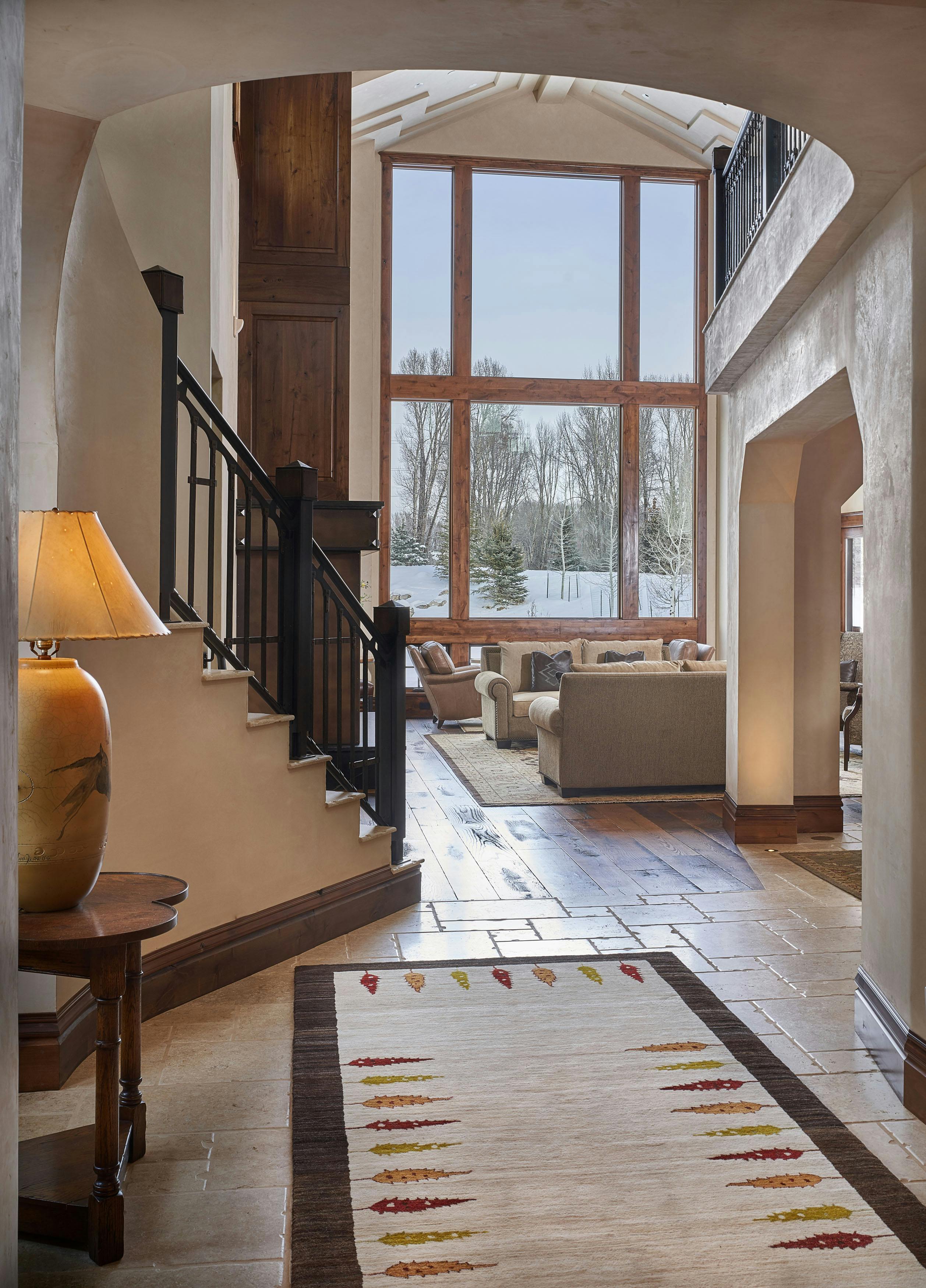 A European mountain aesthetic took us in the traditional direction with this 8,000 square foot complete remodel in the John Dodge subdivision in Wilson, Wyoming. Torn down to the studs, then reassembled with Reclaimed Oak wood flooring, cathedral ceilings, European plaster, and marble bathrooms. The traditional furnishings in neutral tones created a serene sanctuary for our client.